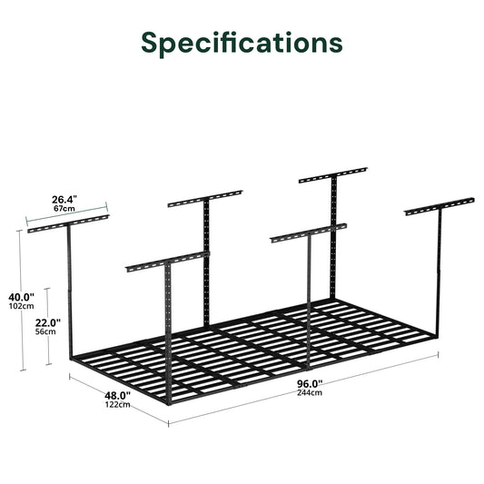 SunsGrove Overhead Garage Storage Rack, 750LBS Adjustable Ceiling Mounted Storage Racks