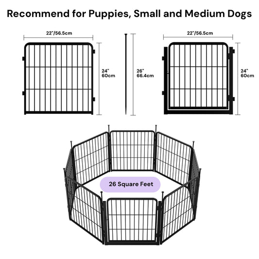 SunsGrove Dog Playpen, Heavy Duty Anti-Rust Pet Pen for Indoor, Courtyard, RV Camping for Dogs,Black
